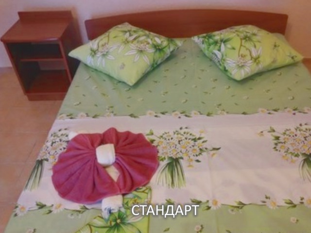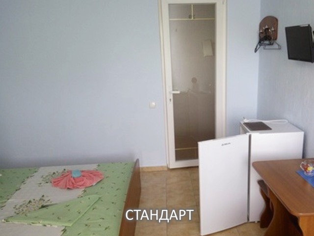 Номера СТАНДАРТ: 2-3-х местные номера расположены на 3-м этаже! Площадь данных номеров составляет 18 кв.м. Туалет и душ в номере, холодильник, телевизор, электрический чайник, кровать , тумбочка, вешалка с зеркалом, стол и стулья в номере. Нет террасы.