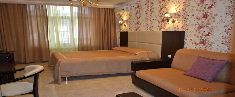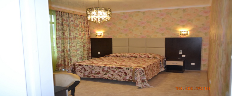 Великолепный гостевой дом, всё продумано, душевно, со вкусом, для взыскательных гостей! При входе в гостиницу испытываешь приятное удивление!  Рядом находятся: супермаркет, бары, ресторанчики. Есть кухня для самостоятельного приготовления пищи. В номере стандарт: туалет, умывальник, душ, телевизор, холодильник, кондиционер.  Подключен Wi-Fi бесплатно. Пляж -7 — 10 мин. ходьбы.