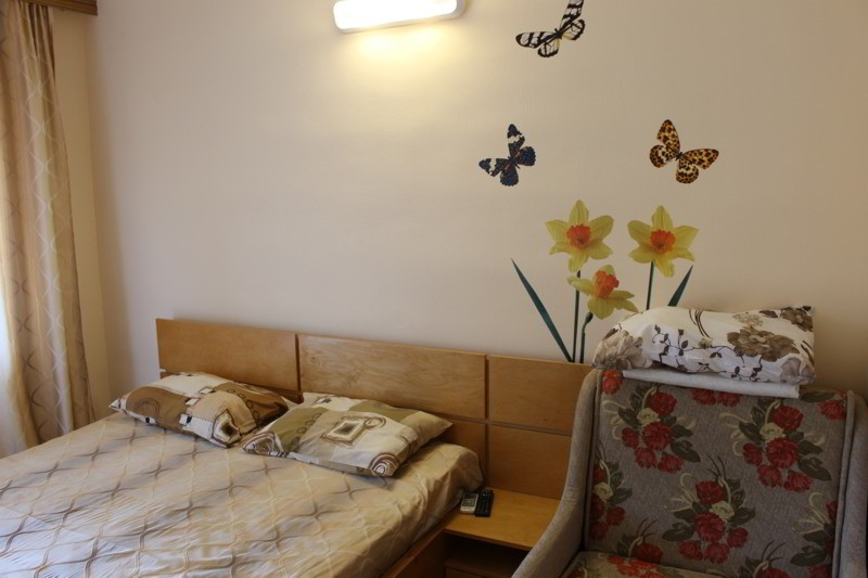- 2-х комнатный Стандарт ( макс. 5 чел), телевизор, кондиционер, холодильник, набор мебели, боковой вид на море, двухспальная кровать, две односпальные кровати, плюс дополнительное место, удобства в номере ( душ, туалет, умывальник), чайник по запросу, бесплатный Wi-Fi, балкон с уличной мебелью;