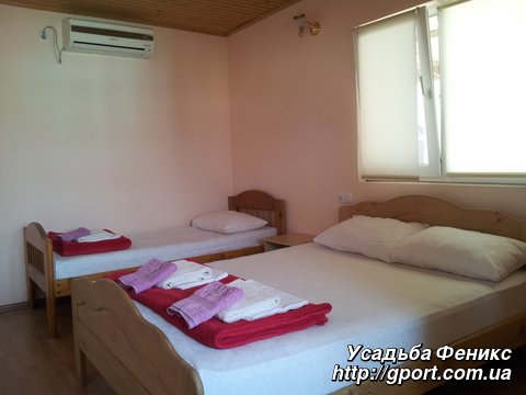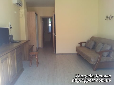 3-й этаж — ЛЮКС (возможно размещение от 4 до 6 человек), с балконом, вид на море: В номере спутниковое TV на 60 каналов, WI-FI, кондиционер, холодильник, санузел, вода холодная и горячая круглосуточно, мягкая и деревянная мебель из натурального дерева.