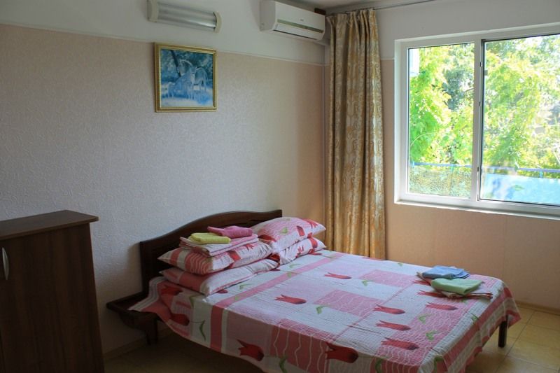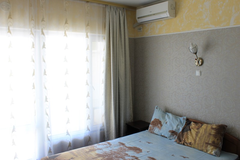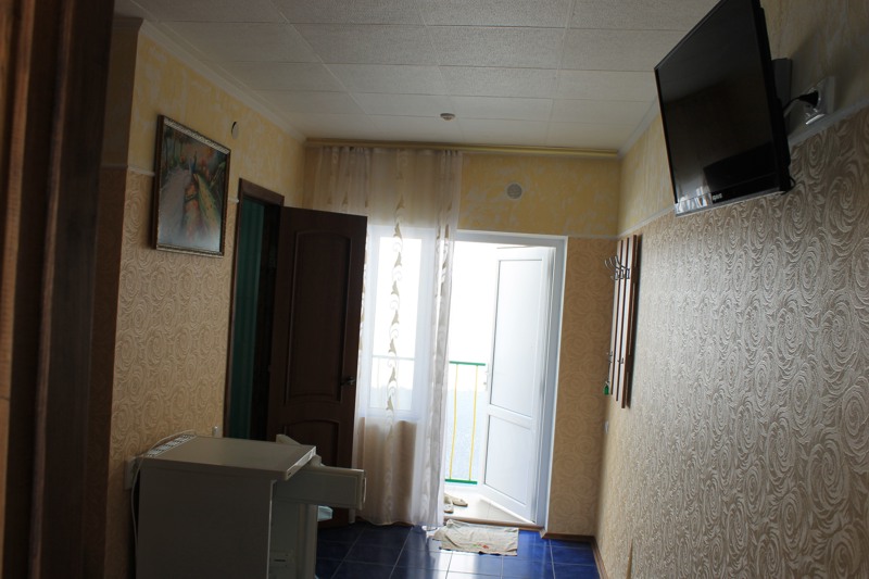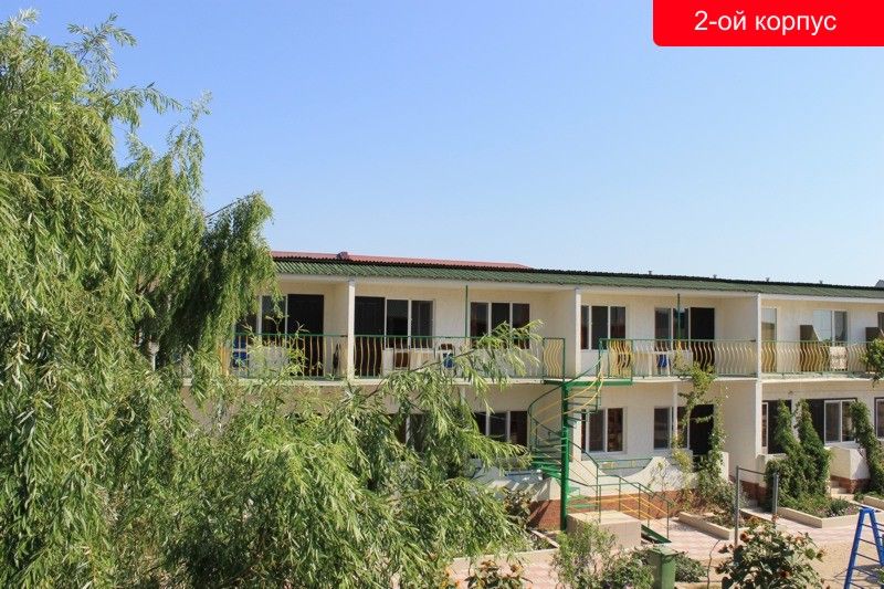 Корпус №1 — двухкомнатные номера, вмещающие от 3 до 5 человек (двуспальная кровать + раскладной диван + доп. место — еврораскладушка). Вид на море с балконов.